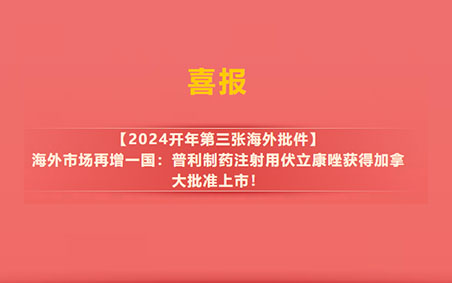 海外市场再增一国:普利制药注射用伏立康唑获得加拿大批准上市!近日,普利制药收...