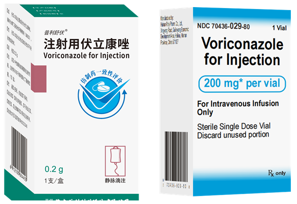 该产品是国内目前唯一出口且过评的伏立康唑针剂,同时采用与原研一致的辅料—磺丁基倍他环糊精钠,解决国内早期上市的国产伏立康唑配液易结晶且配液不稳定等问题。